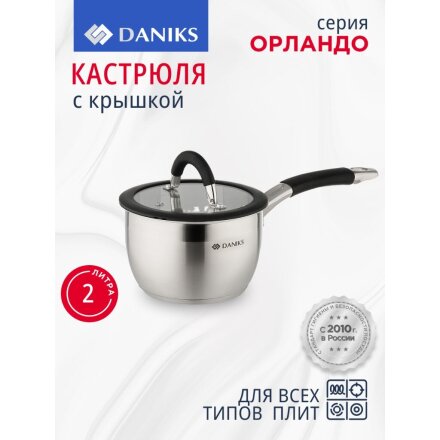 Ковш нержавеющая сталь, 1.9 л, крышка стекло, силиконовая ручка, индукция, Daniks, Орландо, GS-01435-16S