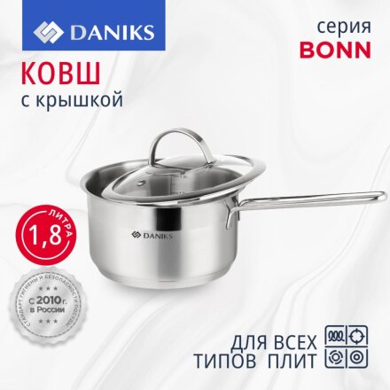Ковш нержавеющая сталь, 1.8 л, крышка стекло, металлическая ручка, индукция, Daniks, Бонн, GS-01319-16SP
