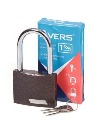 Замок навесной Avers, PD-01-75-L, 20563, цилиндровый, 74х103 мм, 3 ключа